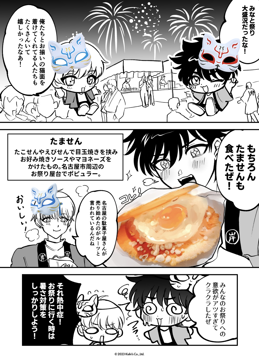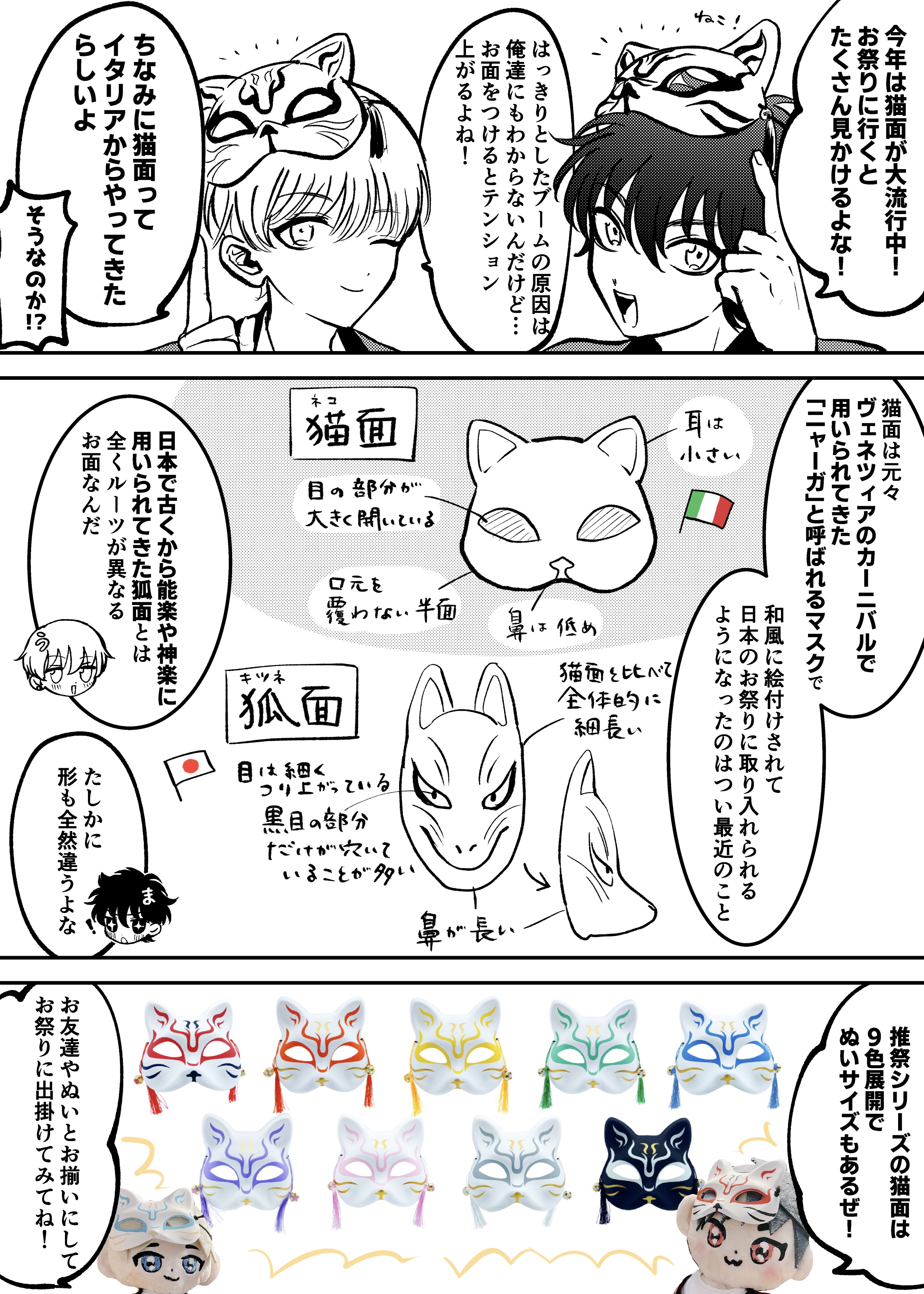 猫面と狐面